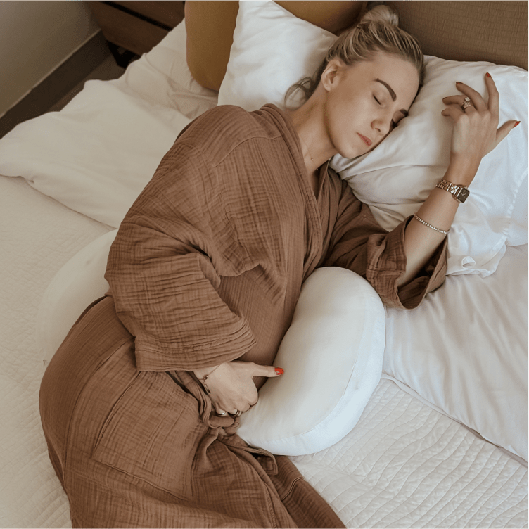 "Most pregnancy pillows are oversized and filled with synthetics. This silk pillow offers targeted support, cooling comfort, and real relief without the bulk or the plastic."